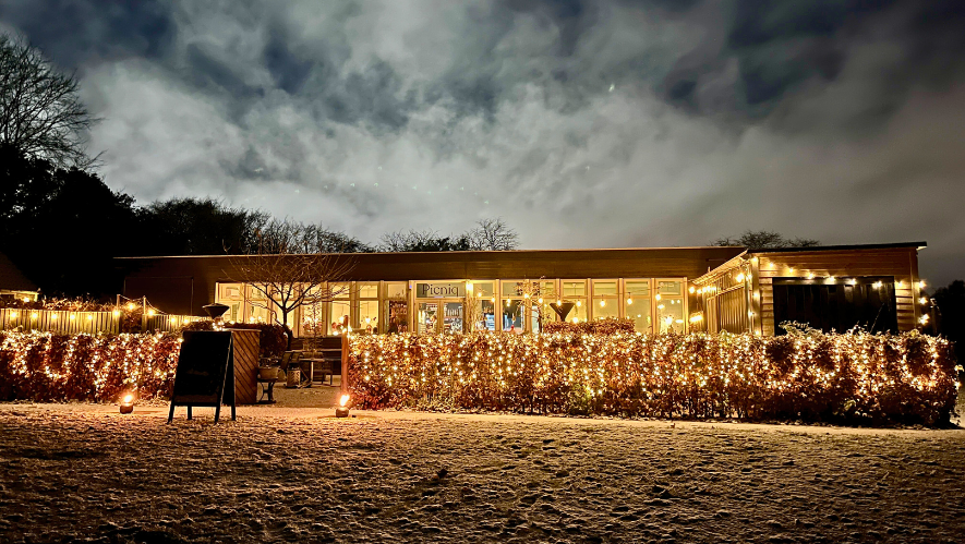 Rammen er sat for en rigtig julemiddag, når der tændes op for hyggen i lamper og lanterner, bål og et 5 meter højt juletræ. Kommer du først på besøg i den nye år er menuen naturligvis tilpasset sæsonen, men hyggen er intakt og Picniq lyser fortsat smukt op i mørket.